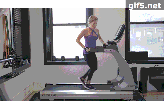 动作3:启动跑步机,速度掌握在 5 英里或 5.5 英里每小时(相当于 8 到 9 公里每小时)。侧向跑步机,滑步,进行 2 至 3 次滑步后,进行一次跳起脚跟互碰动作。坚持这套动作 30 秒的时;间。不要在意这个看起来奇异的动作,它会使你的锤炼后果加倍。