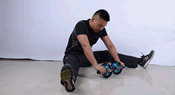 办法5:后背式练习---坐在地上,将健腹轮放在当面 ,两手把握健腹轮手柄推进健腹器,使身材向后最年夜限度延长,然后收受接管归位,重复操作。
