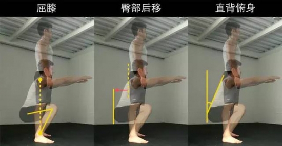 3、吸一口吻,下蹲。所谓深蹲,应蹲到起码年夜腿与地面平行,或膝盖与𧂘、臀部成一向线。