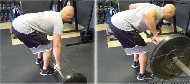 1. 宽 距 站 姿 , 双 手 正 握 , 握 距 比 肩 稍 宽 , 双 臂 完 全 伸 直 ; 微 微 屈 膝 , 从 臀 部 屈 背 , 保 持 身 体 成 4 5 度 角 不 变 ; 持 铃 在 身 前 , 稍 稍 低 于 膝 盖 。