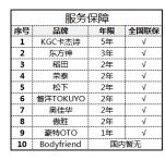 稻田、荣泰、松下、督洋、奥佳华、傲胜等品牌的质保均为2年,比较短。