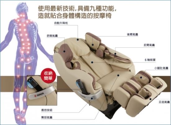 上面这些技术和功能这是稻田S999按摩椅创新技术方面的部分展现。对S999来说,因为集合了INADA稻田众多新的先进技术,使得该产品还未上市就已受到业界的高度关注。对于广大中国消费者来说,无疑也是一个利好消息,中国消费者有望同步享受到这款集先进技术和完美按摩体验于一身的优秀之作。