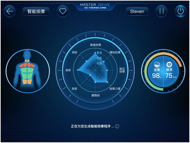 当然,一台真正的好按摩椅远不止于此。就像杏林高手򏡻,。除了擅长对症下药,�,��还需要懂得“望闻问切”,知道“症”在哪里。而御手温感大师椅AI版正是这样一位能够知晓你的酸痛与疲劳,更懂得你的按摩需要的”按摩大师”。新品搭载全新疲劳感测系统、云端数�;𼫵。据库及AI智能算法,只要轻轻握住健康检测手柄,疲劳状态就能一目了然。针对每个人不同疲劳状态和健康数据,还能够一键定制舒适、有效的私人推拿手法与方案,方便又贴心。