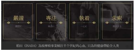 “稻田按摩椅通过技术矢志革新和改进所奉献的产品,既是日本按摩椅核心技术和优秀水准的体现,更可以确保医疗按摩真正运用到人体,进而提升人们身体健康和生活品质的关键所在”。就如稻田按摩椅创始人稻田二千武的经营初衷,通过制造真正的按摩椅,努力让全球每一个家庭都可享用到专业化、智能化的按摩椅,享受保健之乐。