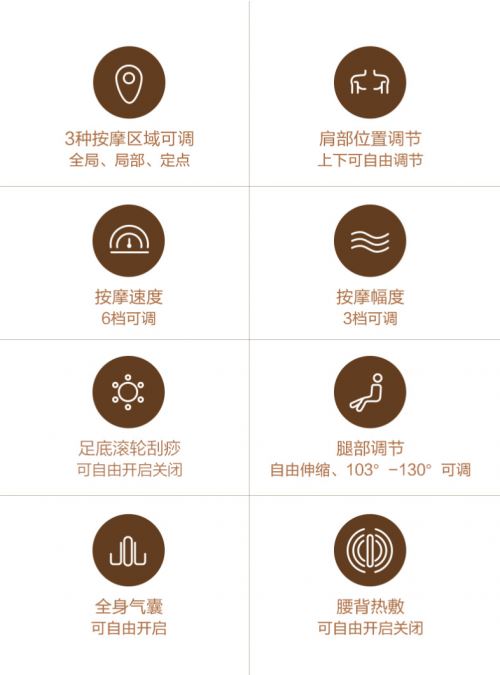 如果你不太喜欢标准化的按摩体验,想寻觅个性化定制的快感,这款按按摩椅东方神摩椅就是为你准备的,它的按摩区域、按摩速度、按摩幅度、肩部位置、靠背角度、小腿伸缩角度等等都可自由调节,并能自由控制全身气囊、足底刮痧、腰背热敷的开关,还能自由选择按摩手法,想怎么按就怎么按。