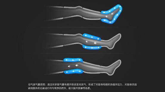 研究表明,通过对多腔气囊有顺序的反复充放气,形成了对肢体和组织的循环压力,对肢体的远端到肢体的近端进行均匀有序的挤压,可以改善人体微循环,从而预防多种疾病。