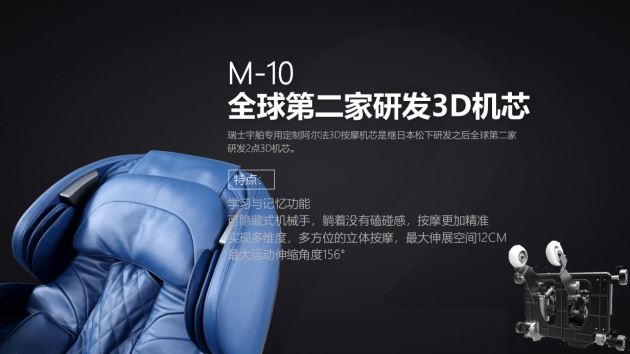 HUBLOT Yubo的3D机械手是继松下成功开发3D之后,世界上第二个开发3D机械手的机械手。瑞士优步特殊定制的alpha 3D按摩动作,真正实现多维、多向的三维按摩效果。数据显示,最大扩展空间为12CM,这是一个真正的3D机械手。