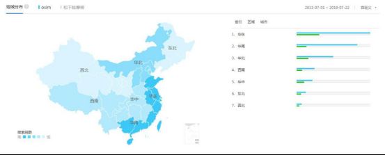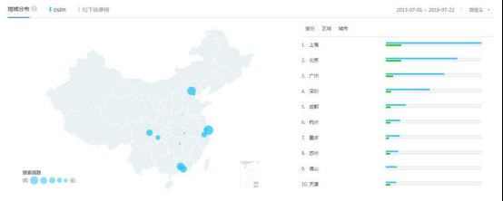 “OSIM”;而且“松下按摩椅”;地区/主要城市搜索指标排名表(2013年7月26日~2019年7月27日)