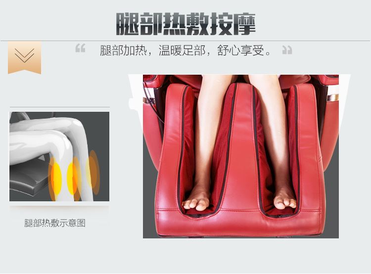 怡禾康YH-F7推拿椅,在细节上,还设置装备摆设了腿部热敷推拿功效以及阻燃海绵,不仅使你的腿部得到更优质呵护,还能恬静环保更隔音。