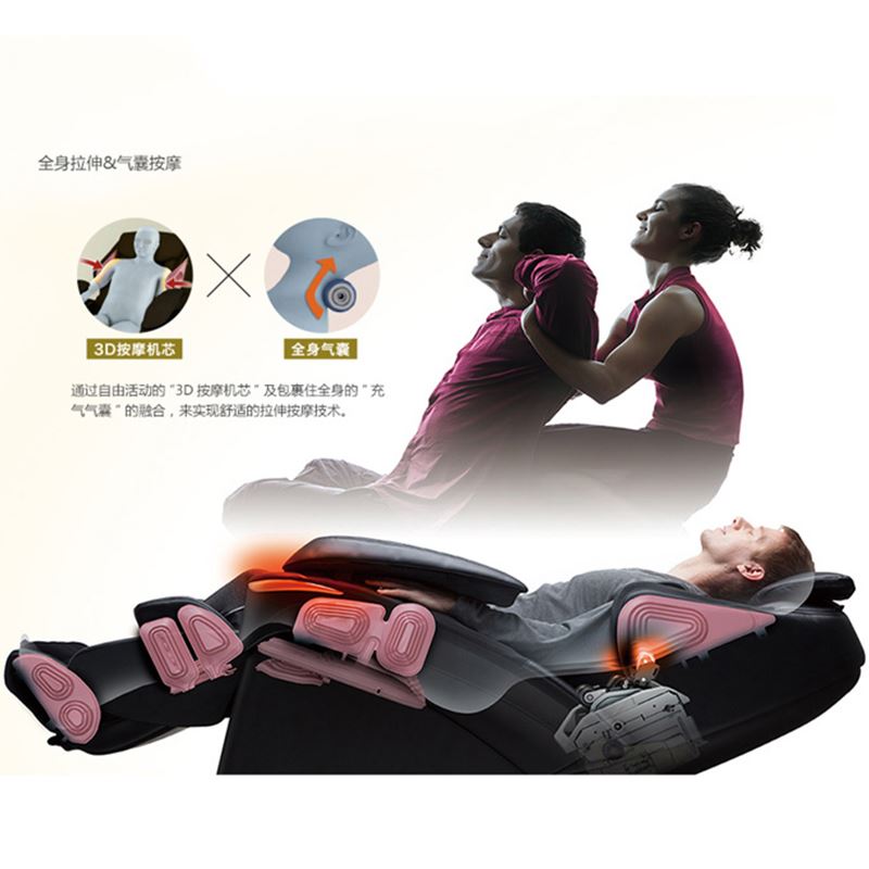 这款按摩椅带有全身「温感」按摩功能,让颈、肩、背、腰至脚部得到全身温暖按摩体验!6组全自动按摩程式:揉抚放鬆、揉按鬆弛、深层指压、身体伸展、颈部重点、腰部重点!肩膊抓捏式按摩,配合手臂至脚腕气垫按摩,兼容脚底穴位按摩,全面舒缓疲劳!