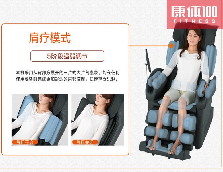 富士EC3850全身遍布了气囊,从背部到腿部,甚至在脚踝部都有气囊遍布,在按摩时,通过气囊的挤压能让您全面放松,深层享受。这种360度气囊包覆式的设计让您全身每一个细胞都能舒展开来。