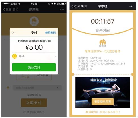 人们通过智能手机就能快速启动和适配等待时间所需要的按摩椅服务,用可负担的零钱来完成一次全身心的疲劳和压力舒缓,即“用零钱做个微SPA”。