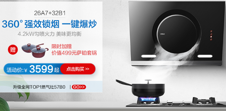推荐搭配套餐:老总26A7+32B1/36B0家用烟灶套装搭配,经典设想,爆款套装,保价全网30天,价钱¥ 3599.00