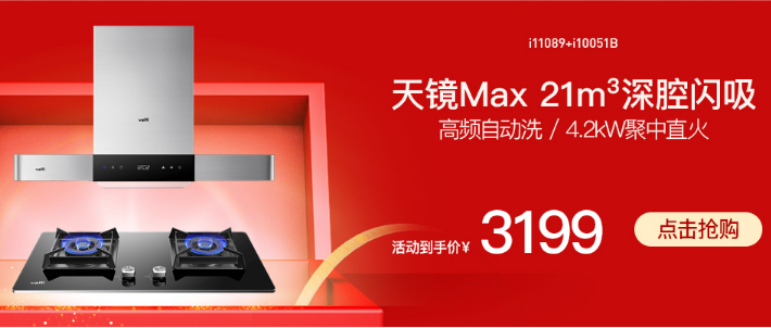 推荐搭配套餐:点击购置—华帝i11089+i10051B顶吸抽油油烟机+燃气灶套餐 3199元