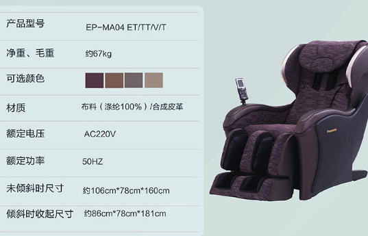 今朝松下按摩椅性价比高的型号松下ma04作为国内组装的型号,价钱不贵,很受迎接。