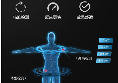 新型检测体系,经由过程计数旌旗灯号完成肩部精准检测,使得按摩更紧合按摩部位,精确度更高。精准检测反应更快后果恬静。