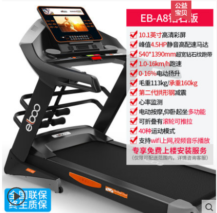 跑带区域: 134x55cm;跑步机净重: 120kg;跑步机最年夜承重: 140kg;坡度调剂方法: 电动;连续输出马力: 1.5hp;峰值马力: 4.5hp;速度调节规模: 0.8-18Km/h。