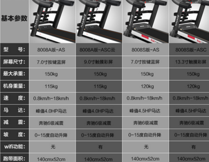 8008A这款型号以前是亿健系列中的“镇店之宝”,亿健作为淘宝销量第一的跑步机,其型号很异常多,每一个型号都有各自的功效,合适分歧的人群应用。