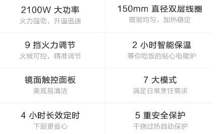 米家电磁炉A1还特殊设置了2小时智能保温功效,设定智能保温,电磁炉就能在两小时内用200w低功率进行加热,智能化实足。