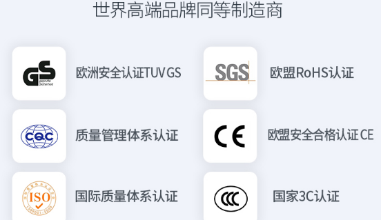 每台跑步机都采取 德标临盆,经由过程国际质量系统认证、CE·GS等认证。有德国总部人员进驻工场监视,包管每台跑步机的质量。在跑带耐磨、抗震性、应用寿命上更好更持久。