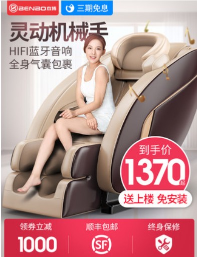 本博按摩椅是2017年开端在网上发卖的品牌,由福建省飞科电子有限公司临盆,在福建省福安市。以低价占据市场,按摩椅价钱在2000-6800元之间。