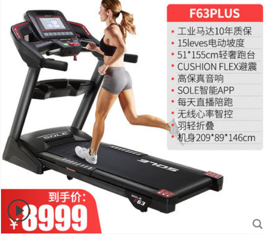 性价比机型:速尔F63 (价钱¥8999.00,跑带139x54cm,承重180kg,连续输出马力3hp,峰值马力5HP)