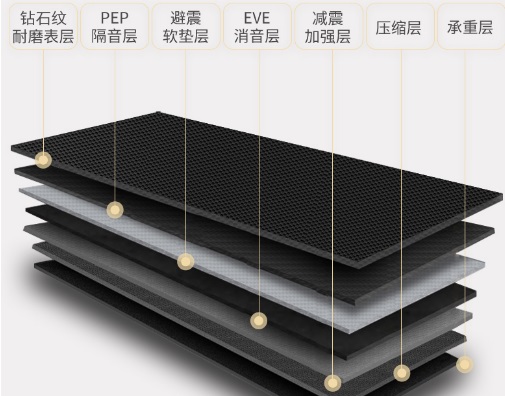 盗窟减震可以纵向分化感化力,将感化力直接传到楼下,削减震撼。对减震有利的还有MR007的跑道,多层跑带由耐磨表面皮肤层、消音降噪层、高强增强层、EVA减震层和高强度支持层构成。起到了非常不错的消音减震的感化。