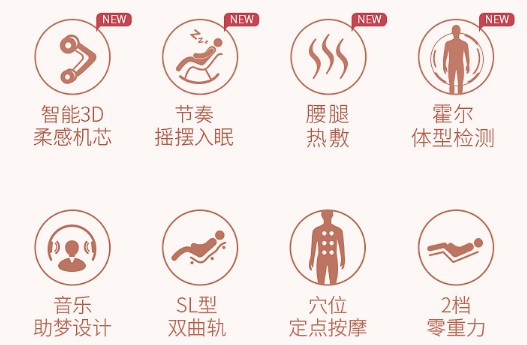 霍尔的身体形状检测技术也是此次OG-7505推广的一年特色。按摩头用于将肩部和身体高度定位在人体的整个背部,为不同的人提供不同的按摩点和按摩方案,为进一步提高按摩精度提供有益的保证。