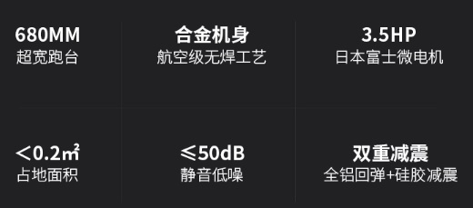 此外,跑步机还采用了全铝回弹和硅胶双重减震的理念,增加了落地缓冲时间,大大减少了跑步过程中的关节损伤。