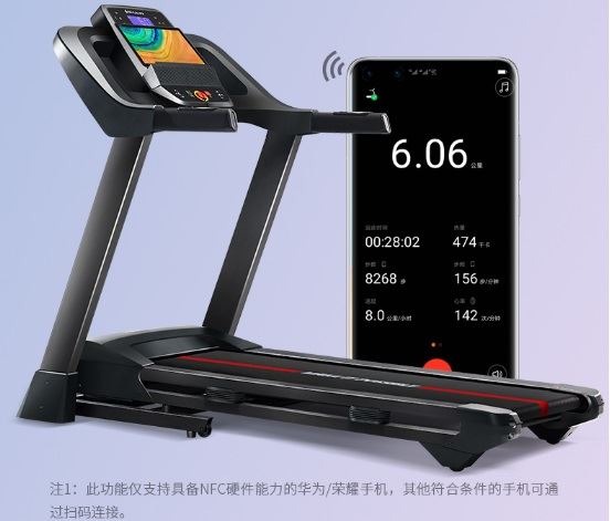 这款舒华A9得益于华为的分布式联合运行技术。除了能够与A9跑步机连接实现运动数据的实时同步外,华为运动健康应用程序还可以与华为的3E跑步向导和华为watch GT sports watch连接,实现数据交换,采集更全面的可视化跑步数据。