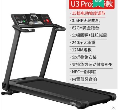 跑带面积:121x52cm;跑步机净重:35.3kg;跑步机最大负荷:100kg;坡度调节方式:固定坡度;连续输出功率:1HP;峰值功率:3.5hp;调速范围:1-12km/h