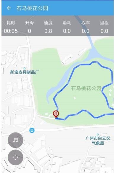 4) 实时显示当前运动时间、距离、平均配速。地图展示运动路径。操作按钮可暂?;蚪崾鼻霸硕?/p>