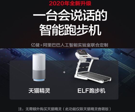 亿健精灵ELF是一款真正内置了天猫精灵的智能跑步机,这是跑步机大品牌亿健与天猫的一次强强联合的产品,不仅名字完美融合,在功能上也是可圈可点