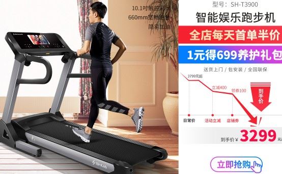 这款性价比也不错,微信互联,比上面那个多了三个功能 智能语音、舒华APP、微信互联 价格上稍微贵点接近4千,销量也不错。优惠后的价格为:3299元