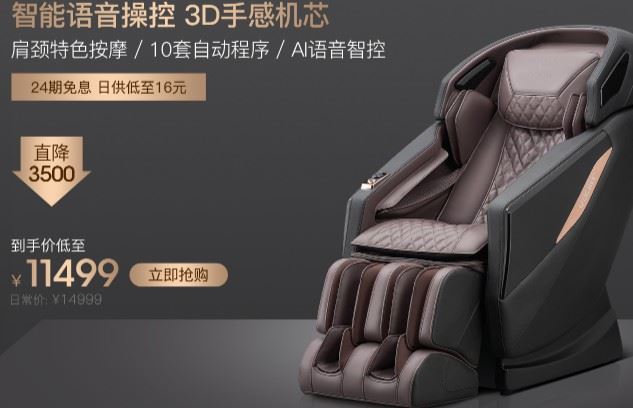 按摩程序多达10种,还有音乐摇摆助眠+瑜伽拉筋! 控制方式上除了??仄?,还有有app以及扶手连动,适合年轻人或者中老年人。