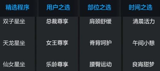 15、精编程序:四大组合尊享程序——精选程序、用户之选、部位之选、时间之选,刷芯体验