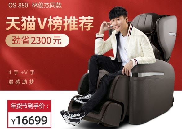 目前傲胜的按摩椅代言人是台湾歌星林俊杰。2019-2020年销量好的型号有以下四款: