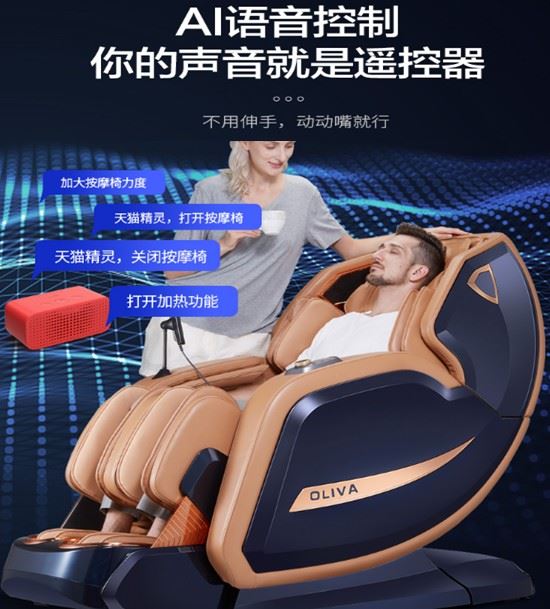 7、天猫精灵语音:当然,“听人话”也是OLIVA欧利华A8909的基本功能,用户可通过天猫直接控制按摩椅,连举手之劳都不再需要。