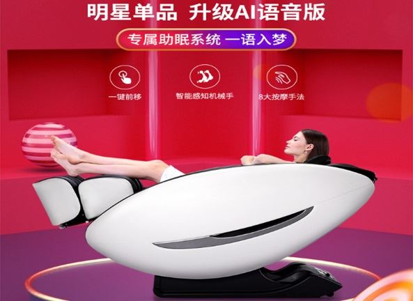 作为荣泰的拳头产品,它搭载了可以实现四麦声控、精准识别指令的科大讯飞智能语音系统和进化的手感3D按摩机芯等众多黑科技。躺进按摩椅里,全身气囊包裹,在海浪般的温柔冲撞下,尽情释放自我,并模拟太空舱零重力秘境,周身舒适轻盈,如同漂浮在水面或云端上。