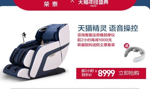 ——荣泰RT6810语音按摩椅,价格¥8999.00,125CM的SL型导轨,3D机芯。带有泰式拉伸、太空零重力,腰部热敷功能,采用的是足底磁石刮痧。内置9大按摩程序可选,从舒展按摩到酸痛改善,可以根据个人需求调节。