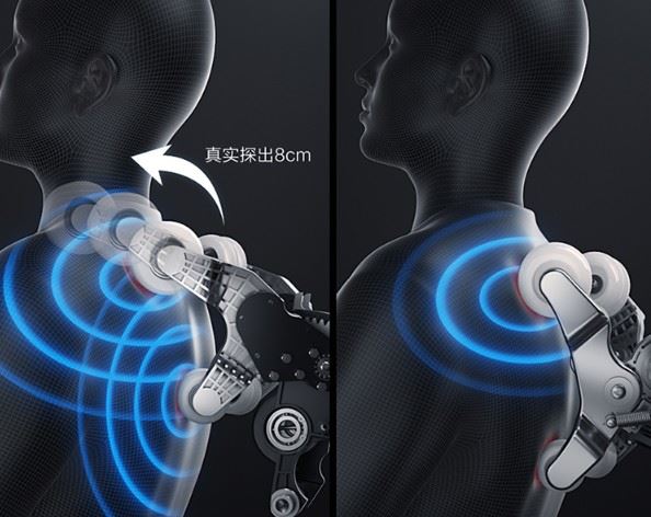 荣泰A60按摩椅采用了三轴联动3D筋膜机芯就结决了按摩界老大难问题。它特有径向传动装置,按摩头可以伸出8cm,更好的深入按摩脖颈两侧的肌肉层。我能立体式的享受颈肩放松,整个肩膀以上部位来一次真正的全面舒缓,真是太舒服了!