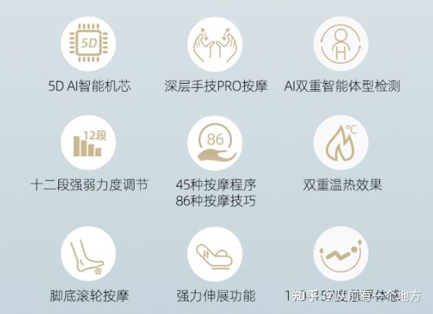 如果想以机能为优先条件,那么自然是选择功能越丰富的商品越好。大部分按摩椅都具备全身揉捏放松的基本功能,而更高阶的按摩椅甚至能够模仿人工按摩,具有细腻的强弱变化,并且能切换拍打、揉捏、伸展等多种按摩手法。