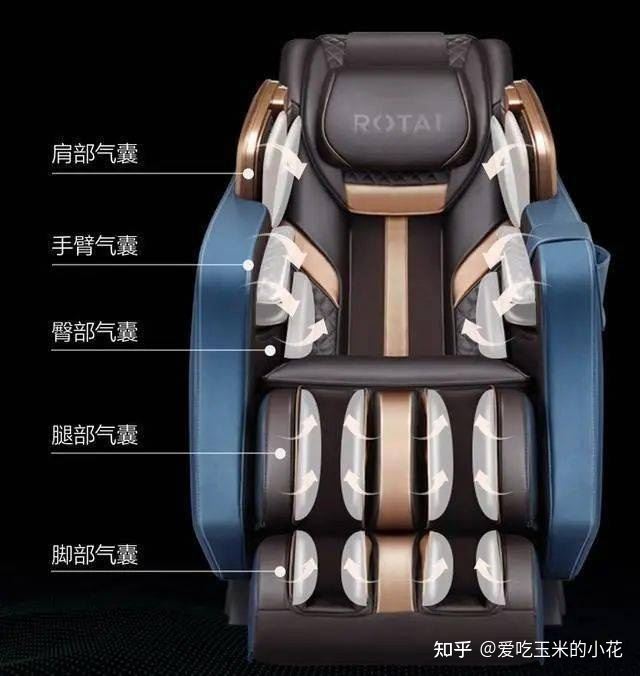 气囊是用来弥补机械手的不足,在一台按摩椅中除了机械手,气囊也是同样重要,一般的按摩椅提供有肩部气囊、手臂气囊、小腿气囊和脚部气囊,而一些高端的按摩椅甚至会提供腰背和臀部的气囊。