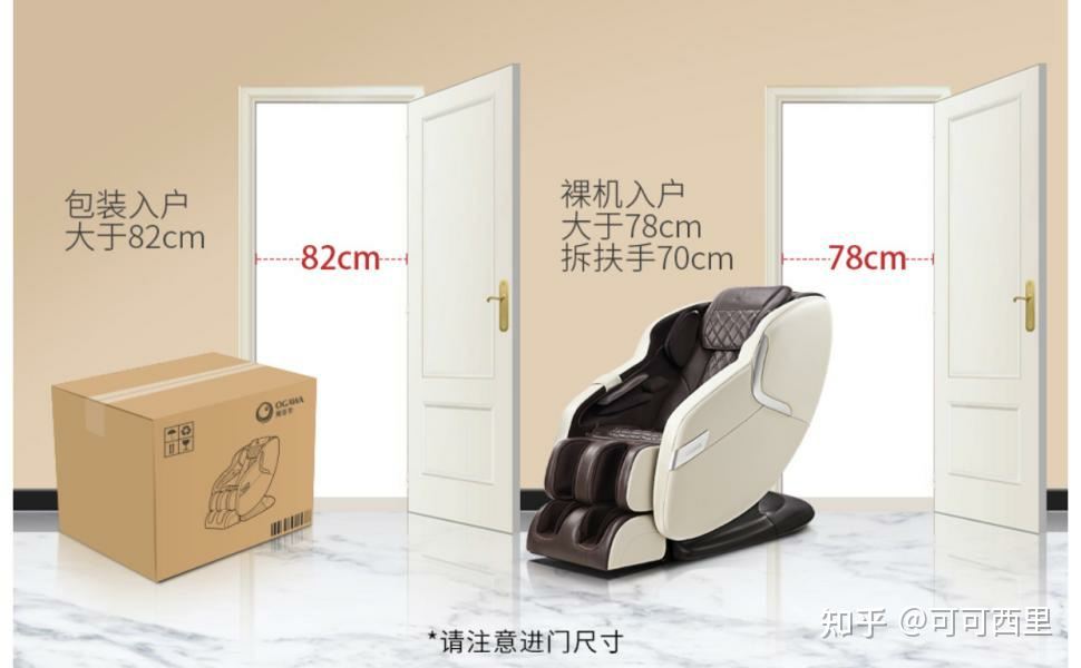 按摩椅作为追求品质生活的一个产品,一般越高端的产品使用的材料越多,科技创新应用的越多,体积也越大,因此,选购时一定要注意按摩椅大小是否能够进入电梯然后抬进家,不过绝大多数的按摩椅宽度不会超过90cm,因此倒也不必太担心。