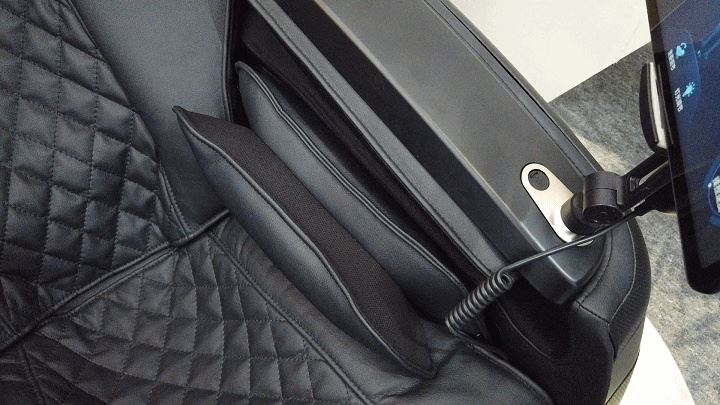 每个人的小腿长度不同,为了能更好的包裹住膝盖位置,机器右扶手上有专门的调整膝盖位置的按键,这样就能完美匹配不同身型的人了。