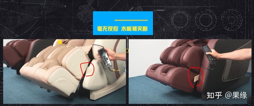 我们能用木条模拟异物来做了一个测试,测试的结果比较可怕,只有傲胜OS880有防夹功能和??仄鞯谋ň?,另外两台按摩以后都毫无反应,甚至还夹断了木板。安全性这一点我觉得傲胜还是做的比较好。