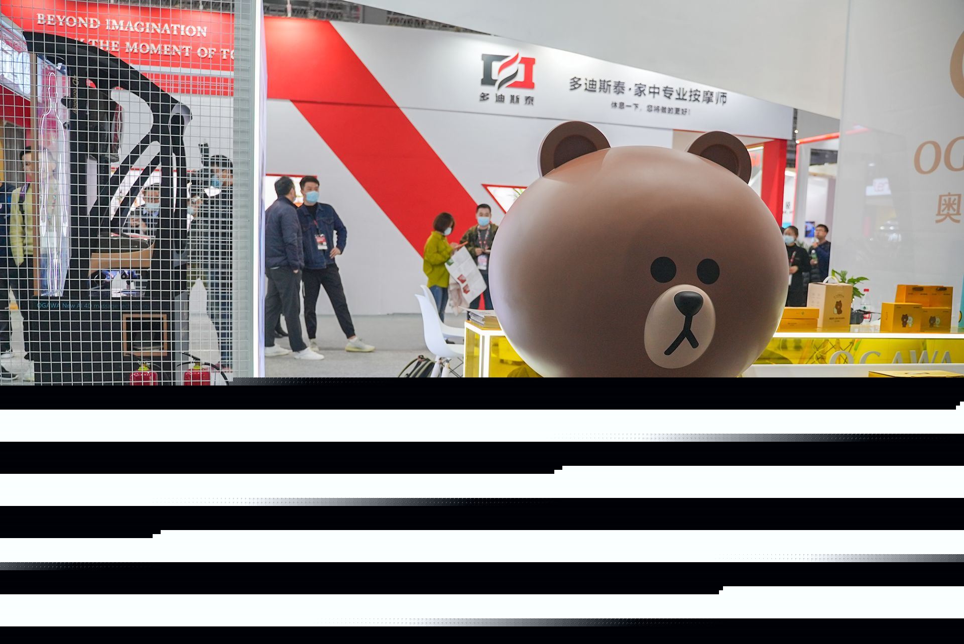 首先我来到的是奥佳华的展台,因为也曾购买过他们家的产品,所以今天重点去探展参观一下??梢钥吹秸固ㄈ肟诖σ桓霾祭市?,这应该是奥佳华和LINEFRIENDS合作推出的系列产品。