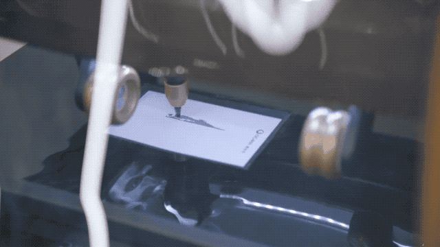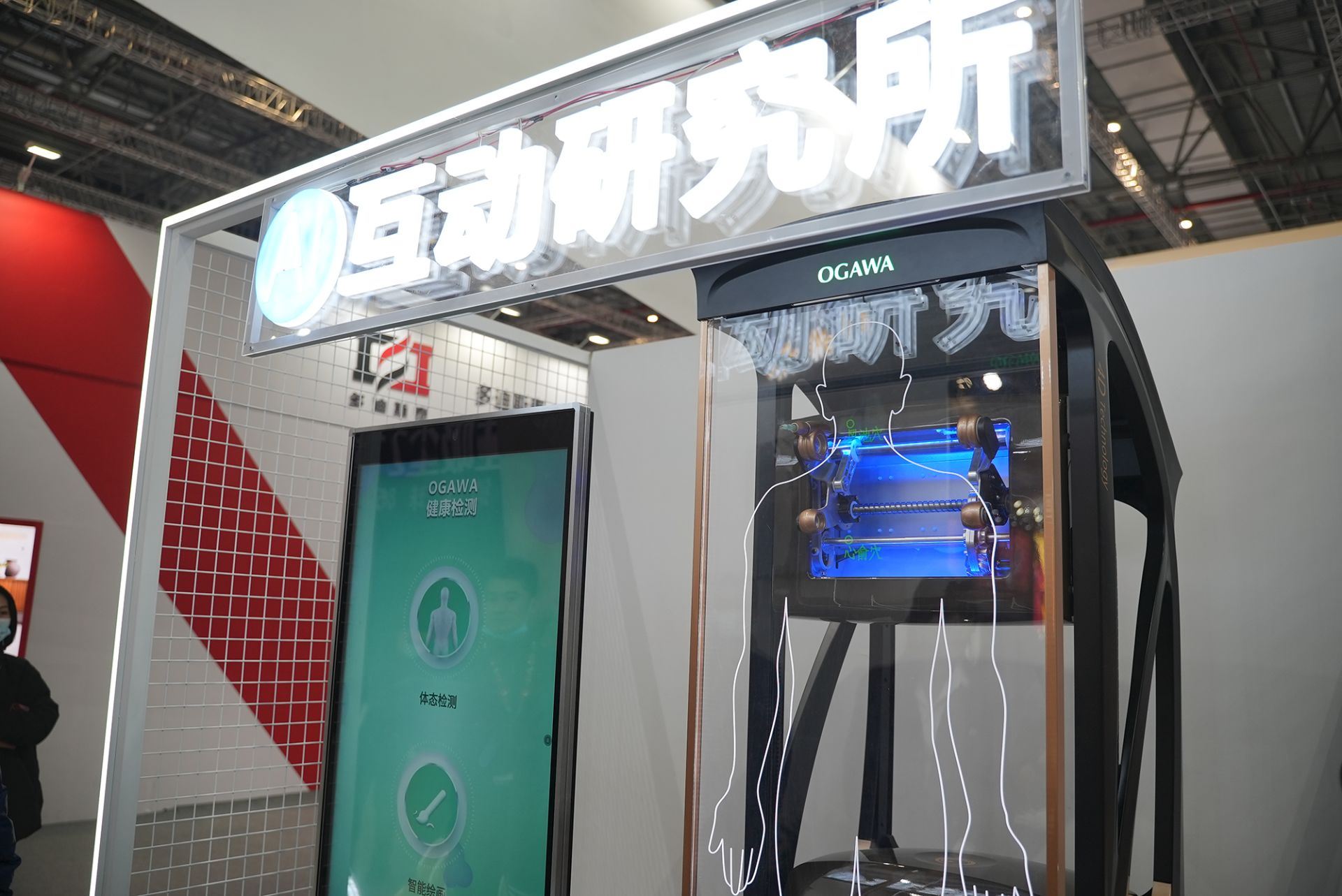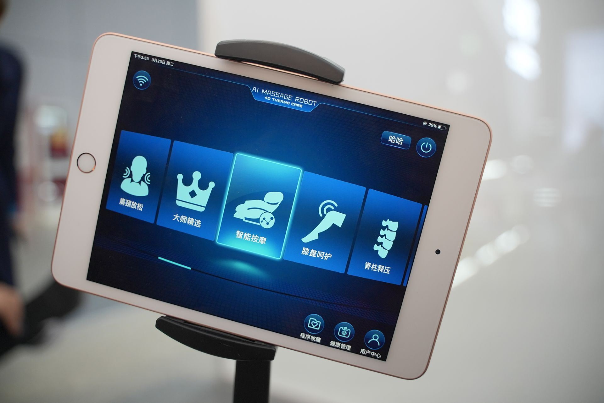 在展台的其中一侧有互动区域,这里陈列着一台设备,可以直观看到奥佳华按摩椅机芯的运动,通过识别图像可以通过机芯来进行作画,这样你们应该了解他们家的按摩椅机芯有多精准了。