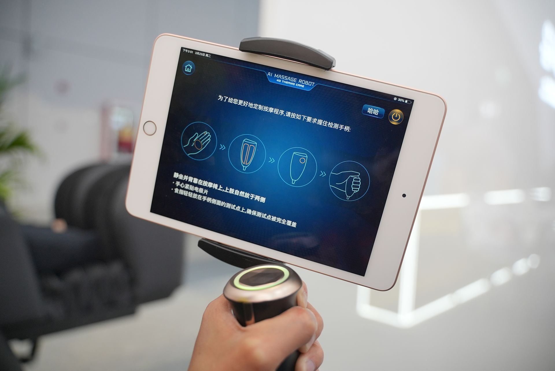这款按摩椅和其他需要用户自己选择按摩程序不同,它搭载了疲感追踪科技,通过手柄按压可以检测当前的血氧、脉率等信息进行疲劳程度评估,直接生成适合你的按摩程序。