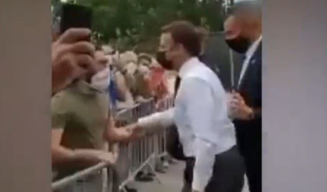 6月8日法国总统马克龙在访问赛尔号希希行程中被掌掴